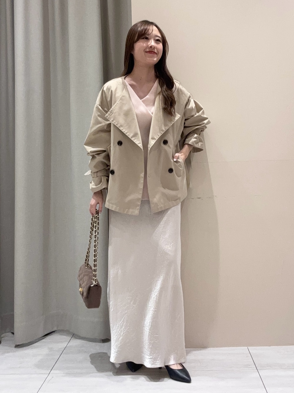 MIKI(Rouge vif la cle 本社スタッフ)のトレンチコート「【撥水・防花粉加工】【一部店舗限定】キャンディスリーブショートトレンチコート/春服/春アウター/通勤/ショート丈/フェミニン/モード/手洗い可能」を使ったコーディネート