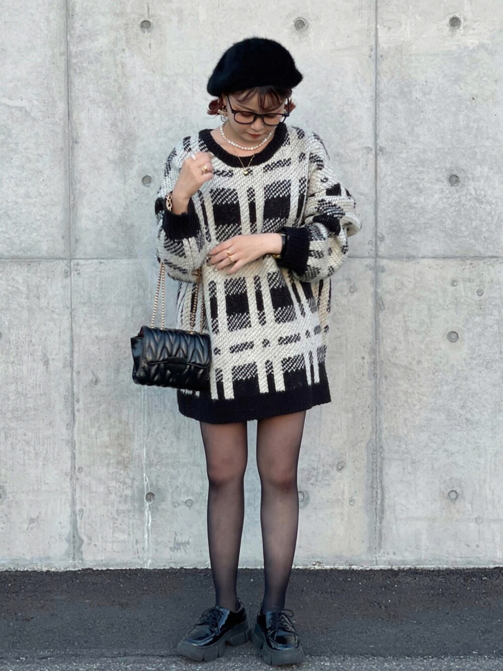 未 来のニット/セーター「BIGチェックチュニックニット 218144」を使ったコーディネート