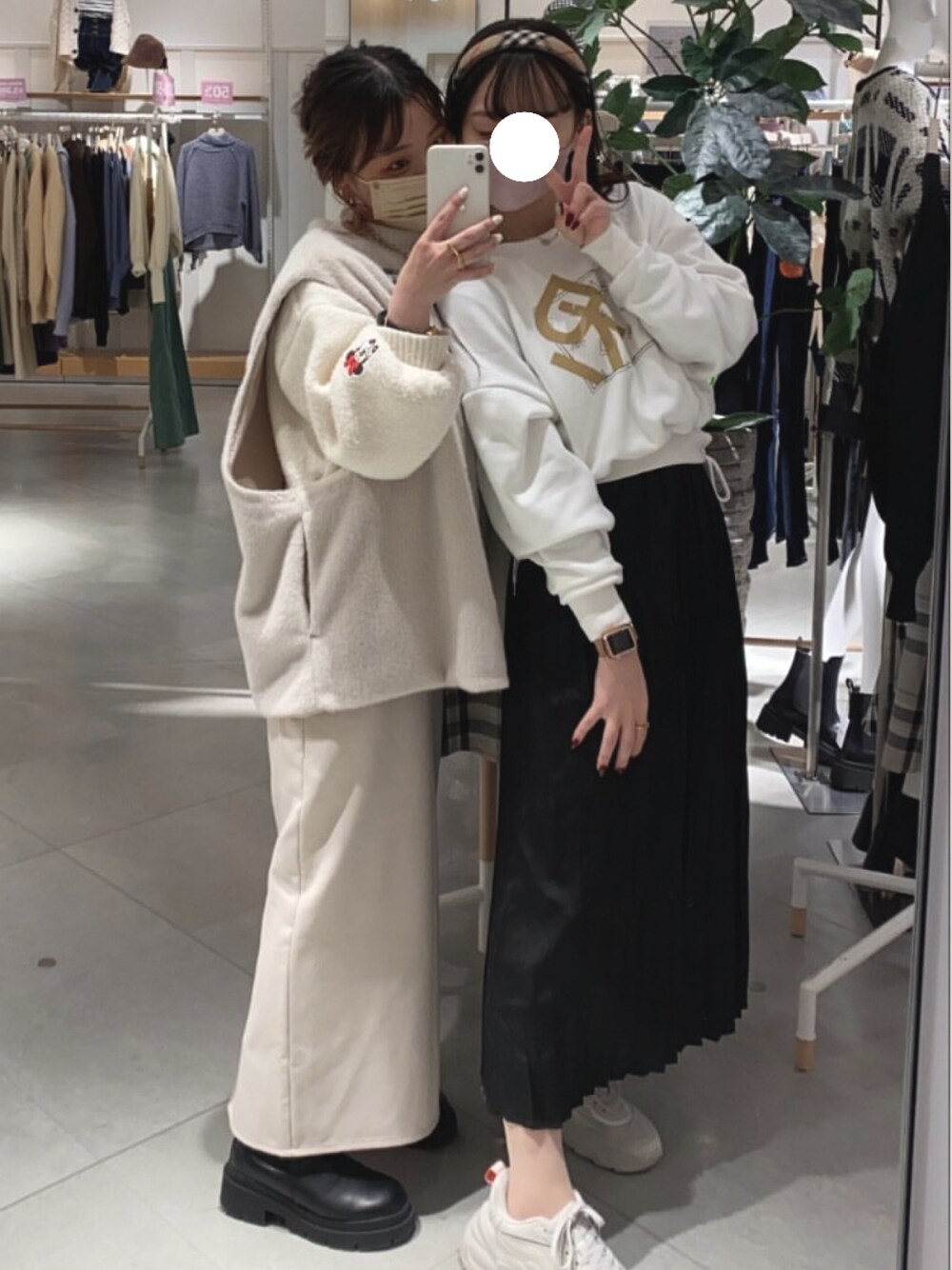 最近どっぷりハマっているWhiteで統一した ワントーンコーデ🤍 全身Heatherでキレイめカジュアル! やっぱりロングスカートにサイドゴアブーツの合わせかわいすぎるな〜〜、、 早速Heatherで大人気な Fベストツキエアサーマルを着回ししてみました〜♡ こんな感じでベストだけでも使えるので秋冬春まで使えちゃいます🤍(シーズン長く使えるの本当ありがたい!🙇🏻♀️💞) トップスはさりげないミニーちゃんとミッキーのワッペンが可愛いニット!Heather×Disneyのコラボitem。 プルオーバーでクロップド丈!ハイウエスト好きの私にもってこいの1枚🥺 ボトルネックなのでタートルネックやハイネックが苦手な方でも挑戦しやすいのと、真っ白で色の邪魔をしないのでかなり使いやすいです◎ 最近自分の顔タイプがアクティブキュートとしってキレイめカジュアルをしがち💞