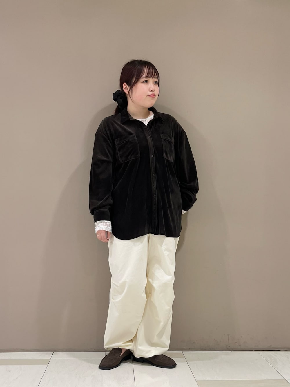 くろ(KBF ルミネ北千住)のシャツ/ブラウス「シアーベロアルーズシャツ」を使ったコーディネート