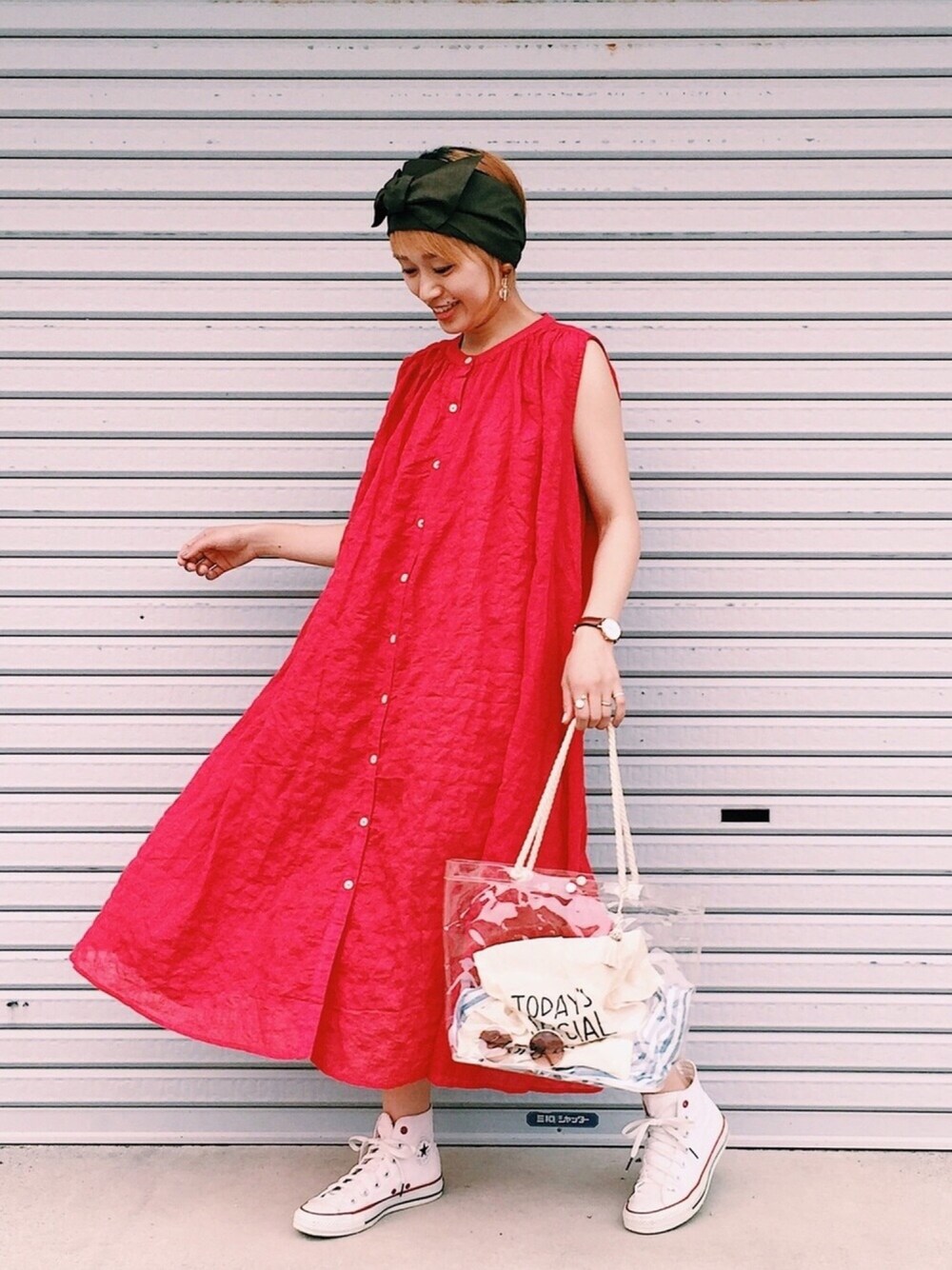 真っ赤なワンピースを買いました♩ ADAM ET ROPE'のカチュームが幅広でターバンぽいので、夏らしいクリアバッグと合わせて南国チックに𓇼𓈒𓂂 私の中でターバン×ノースリーブってエスニックとかエキゾチックなイメージなのです𓃰⋆ 足元をスニーカーにしてタウン仕様に♡ 残り数時間でドラフトも終わりなので、 もう何個か投稿させて頂きます! 毎回見て下さる方、♡やsaveして下さる方、本当にありがとうございます☺︎ instagram☞@cacacano915