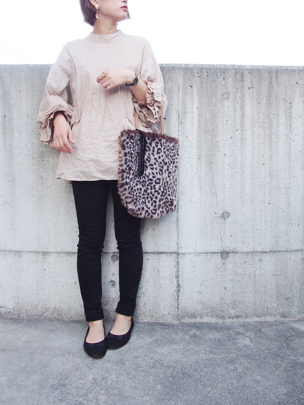 レオパードバッグが主役♡ brigntonのファーバッグは 私が持ってるレオパード2色と バンビ柄、ピンク、グレーの5種類。 ベロアのリボンがめちゃくちゃ可愛いんです♡ トートなので出し入れも楽〜♩