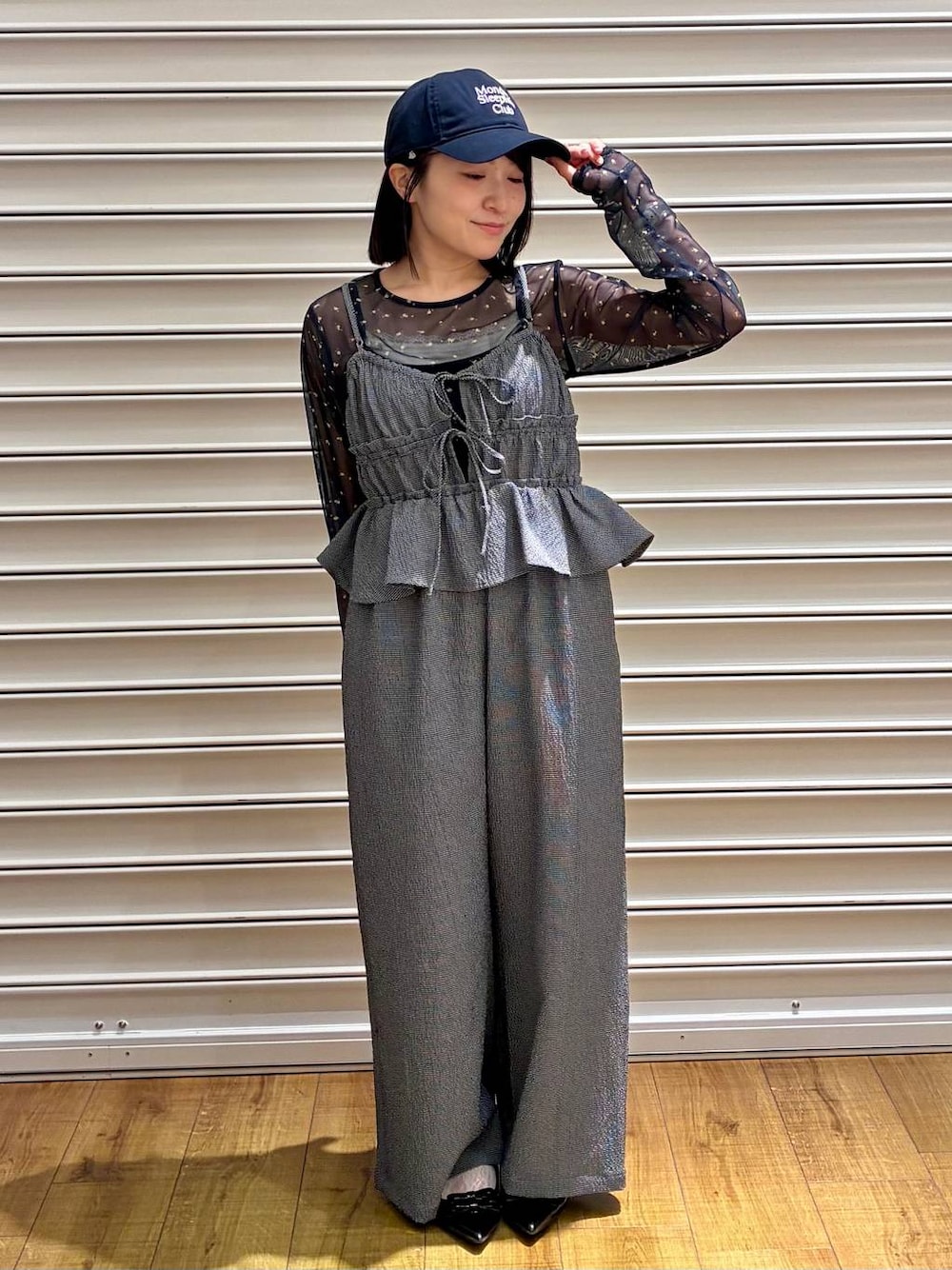 リボンとミニフリルが可愛い♡ 今年らしいペプラムデザインで脚長効果も! フリル部分がゴムになってて着脱もらくらく🥹🫶🏻 インナーを変えれば夏まで着られる "最強最高サロペット"です💫💫