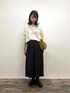こちらはスカートに見えますが、実はパンツなのでスカートをあまり履かない方や小さなお子様がいらっしゃる方にも挑戦しやすいかなと思います👼🏻 サイズはone sizeのみですが短めなので低身長の方にもおすすめです◯ トップスは2990円のプチプラニットです!Vネックが深すぎないので骨格ウェーブでも気にせず着用できました👏🏻