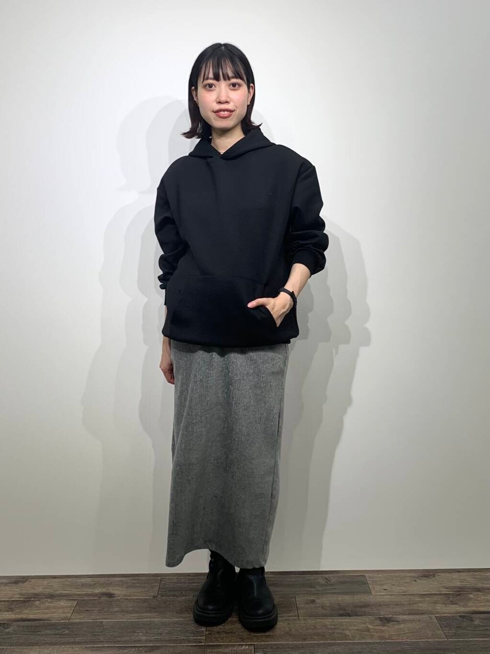 ITEMSのメンズのパーカーを着用してみました🐈⬛🐾 M size着用🗒️ レディースが着ても大きすぎないシルエットで、さらっとしているので上にアウターも重ねやすそうでした! ダンボール素材なので生地の起毛感もなく軽くて着やすいです! ボトムスはきらっとラメ感が可愛いナロースカートを合わせて、カジュアルすぎないコーディネートにしてみました💭 ウエストも全ゴムで楽ちんで素材自体かなり伸びるので、タイト系のスカートが苦手な方にもおすすめです♡