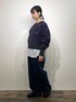 KBFのジャガードニットは編み目がしっかり詰まっているので温かく着ていただけます🐼☕️ 袖のリブが少し長めのデザインが可愛いです! インナーには薄手のブラウスを重ねて裾だけ出してみました! 短めのニットだとお尻周り気になるな〜という方には体型カバーできるのでレイヤードがおすすめです☺️