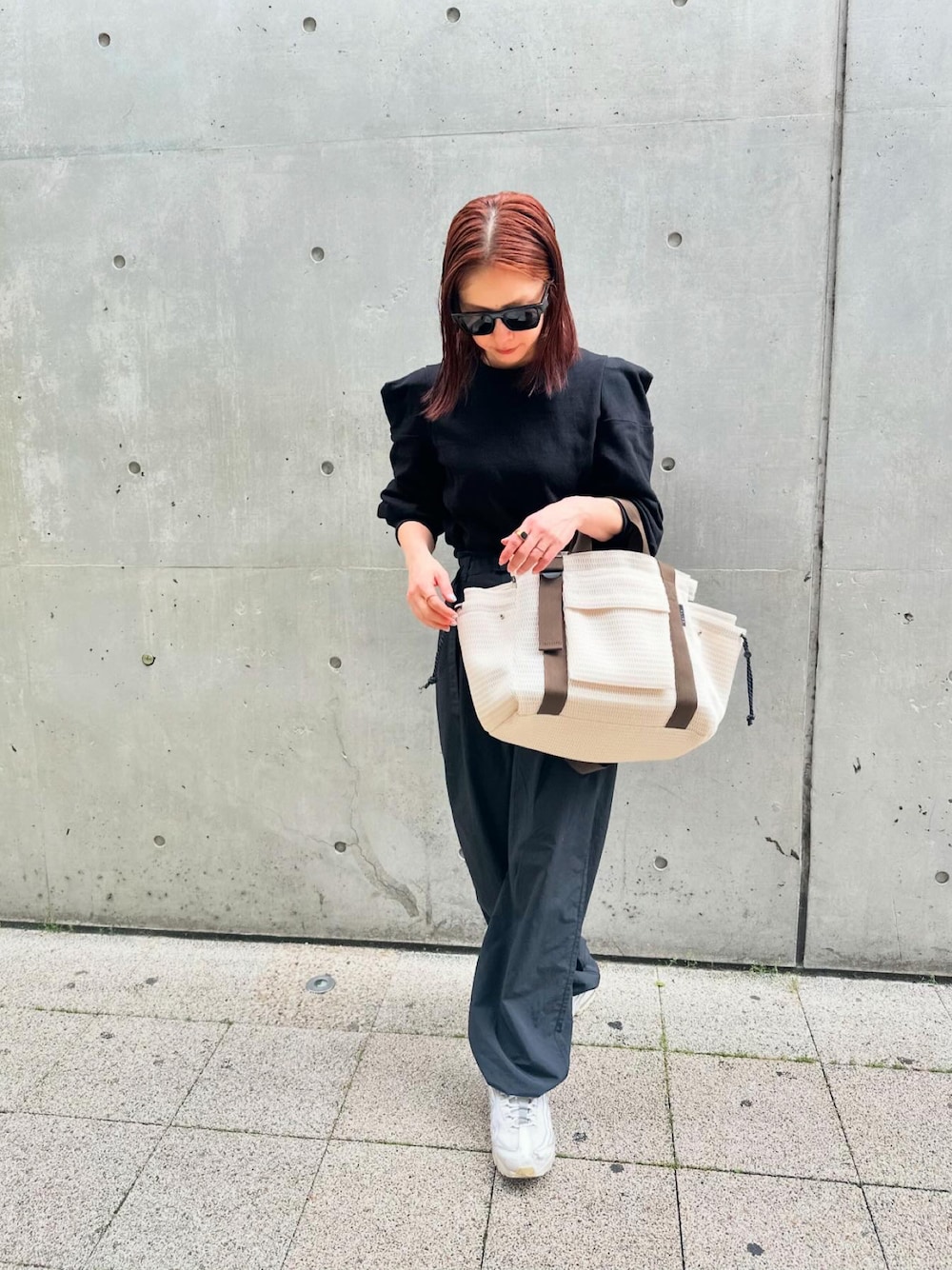 mikiviciousのトートバッグ「メッシュニットトート 大容量 / A4収納」を使ったコーディネート