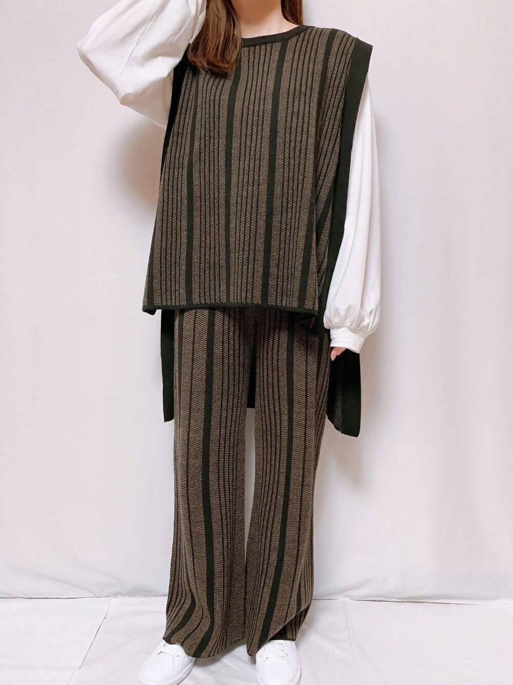 rps_mori(r・p・s イオンモール大垣店)のベスト「ストライプ柄ニットベスト」を使ったコーディネート