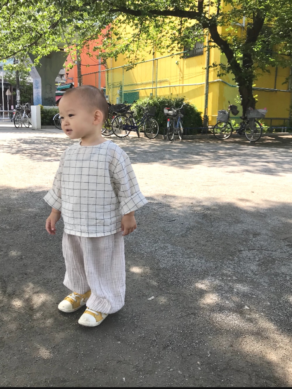 もう半袖じゃないとなぁ... けど可愛くて着せちゃう.. 薄いから大丈夫。 日焼けのが可哀想、うんうん。 と、言い聞かせ😅