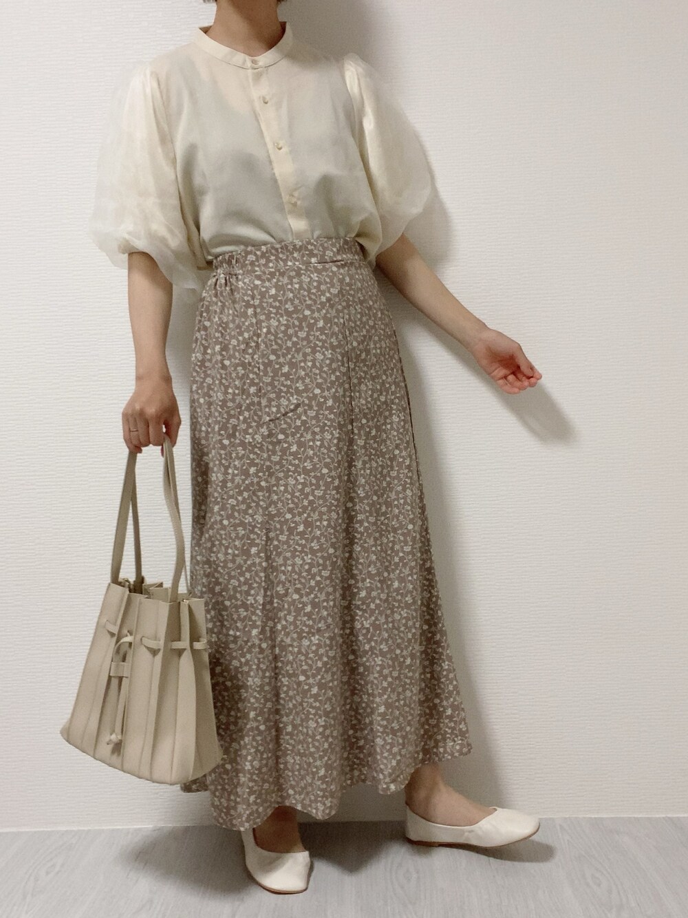 ベージュコーデ✿*:・゚ この春トレンドのマーメイドスカート♡ 小花柄で女の子らしくて可愛い♥ʾʾ instagram▶︎@__mkt.___