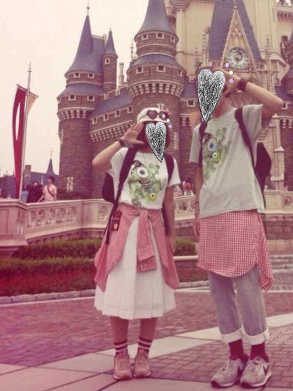 トップス ユニクロ スカート USED ギンガムシャツ 無印良品 スニーカー NIKE バケットハット HARE 先日ディズニーランドへ行ったときにペアルックしました ! 普通の服のペアルックは普段したいという話しになり、ディズニー感出して見ました 。(笑) わたしはオールホワイト、彼はオールグレーで 。 ギンガムシャツの腰巻を違う巻き方にしたのもポイントだと思います 。(笑) あと分かりにくいですが、NIXONのべっこう柄の腕時計とMARC JACOBSのブレスレットもおそろい ! NIKEもマンハッタンのリュックもおそろいです!!! この日を最後にこのTシャツは寝巻きとなったのでした 。。