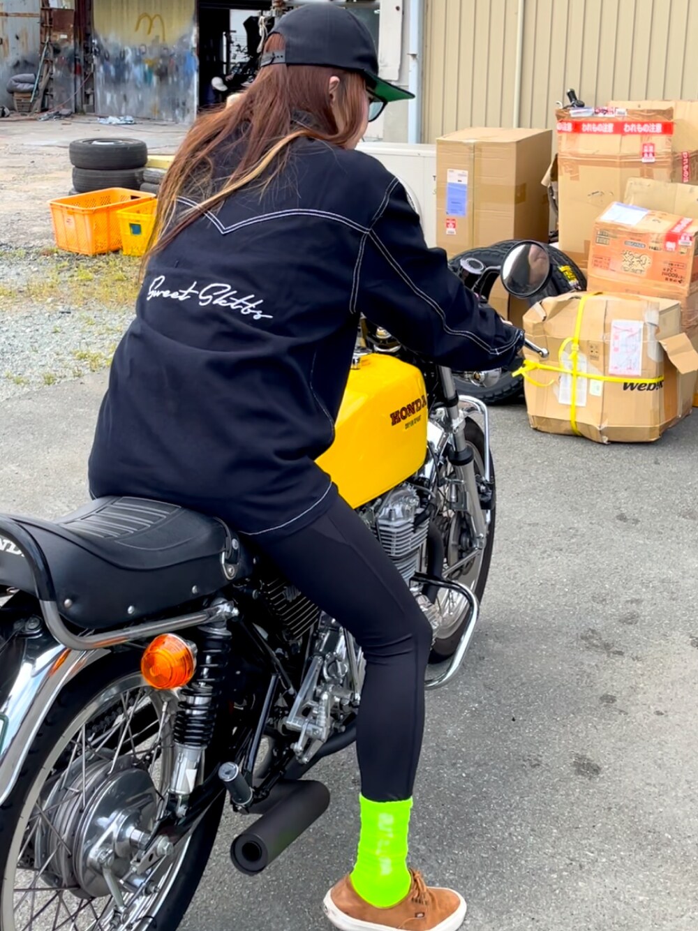 マフラー交換するためにバイク屋さんへ🏍 バイク降りたら直ぐにばんばん脱ぐ派ですw 髪の毛伸びたな〜😆