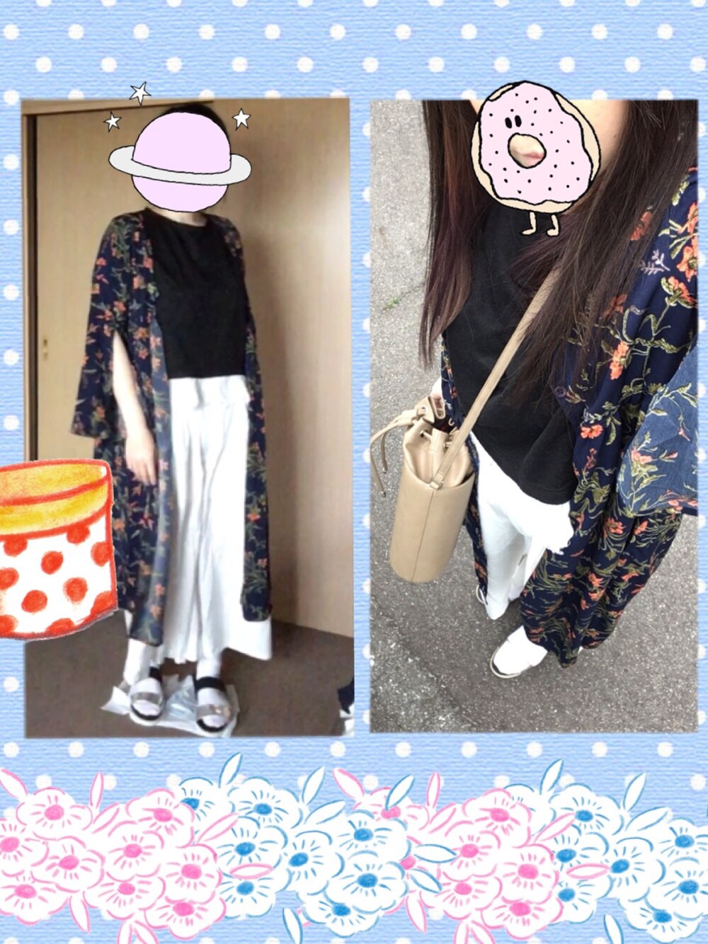 みこ〜のカーディガン/ボレロ「カルム花柄ロングガウン」を使ったコーディネート
