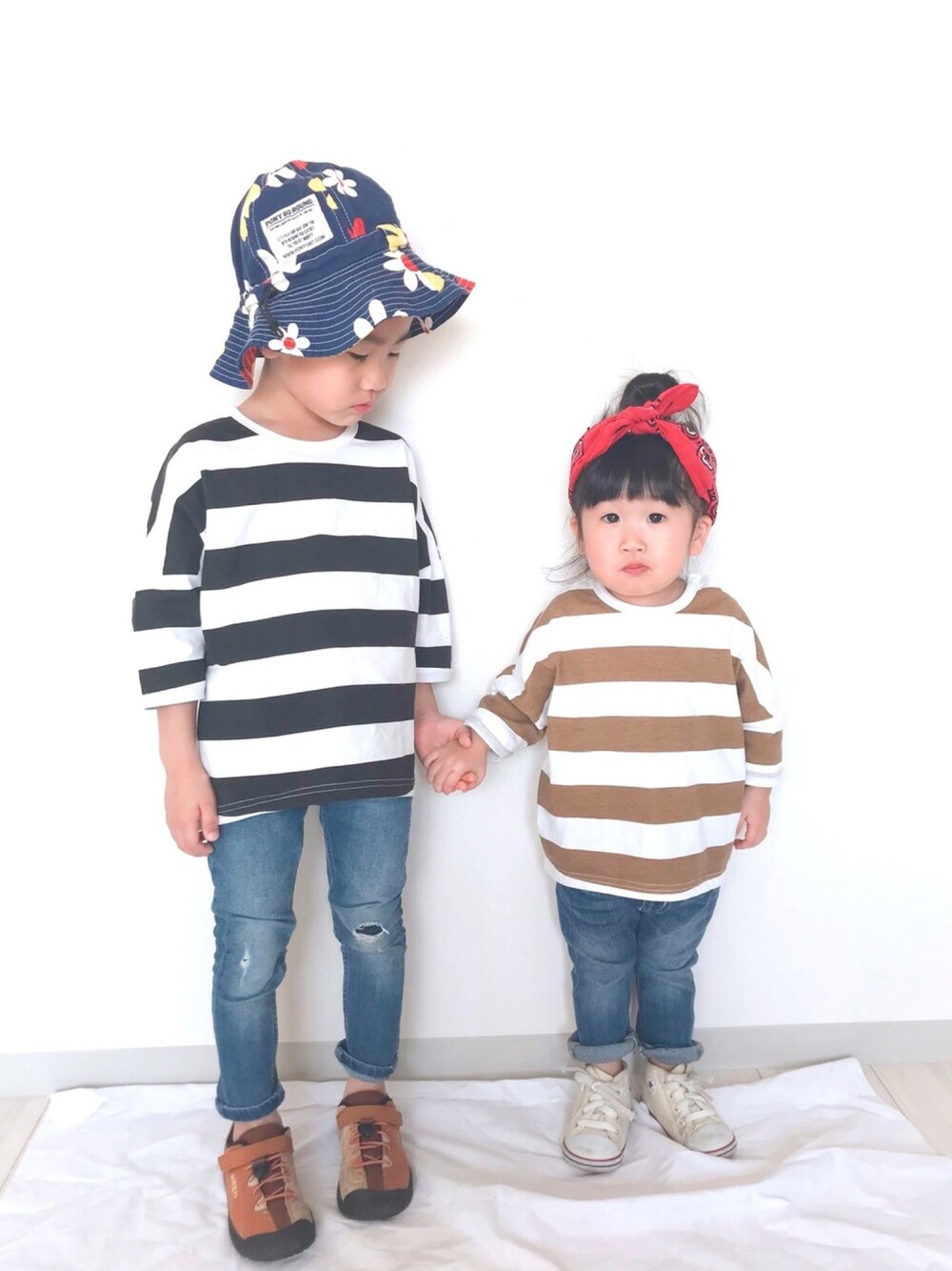 Ruu...のTシャツ/カットソー「ワイドボーダーゆるっとTシャツ カットソー 半袖Tシャツ」を使ったコーディネート