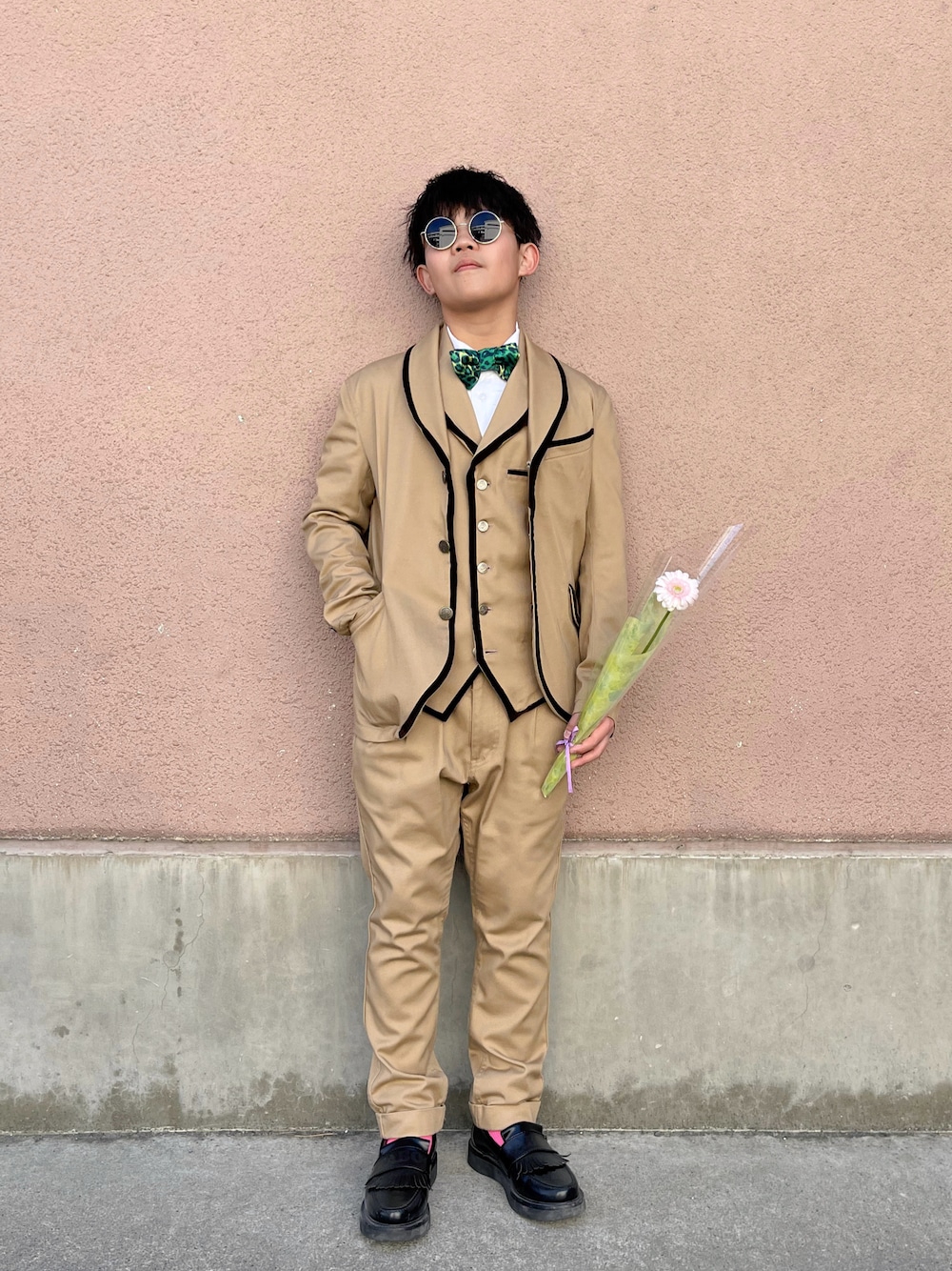 ハ レ の 日 𓈒𓏸𓐍 小学校を卒業しました♡ 卒業式コーデはクラシカルなスリーピーススーツにしました。 WACKO MARIAのレオパードボウタイと、 ピンクのソックスでアクセントを‼︎ 卒業おめでとう𓇢 みていただきありがとうございます♪