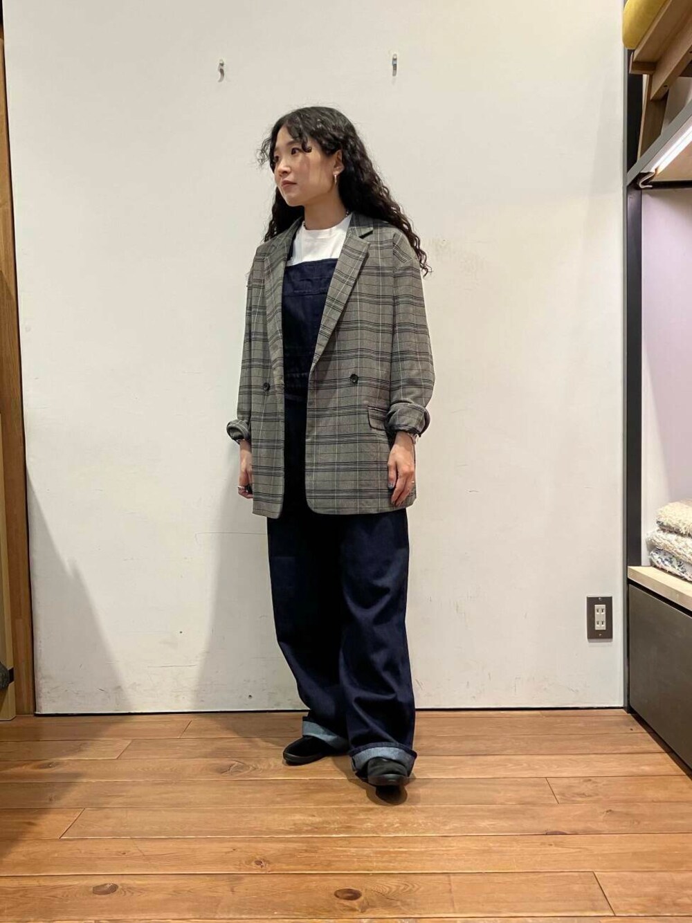 サロペットを主役に、チェックのジャケットを羽織った大人カジュアルを意識しました。 groworganicシリーズのデニムは柔らかく着心地が抜群です。 F&Sのジャケットも、とてもストレッチが効いています。 是非一度お試しになってください。