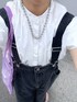休日コーデ! 【デニム】 150センチには長すぎたので10センチほど丈上げしています! サイドにフックが付いているので、スッキリ見せることもできます。 外すとゆったりするので、大きめシルエットで着たい方にもオススメ! サスツキですがハイウエストなため、子どもっぽくならずに着ていただけます☺️