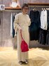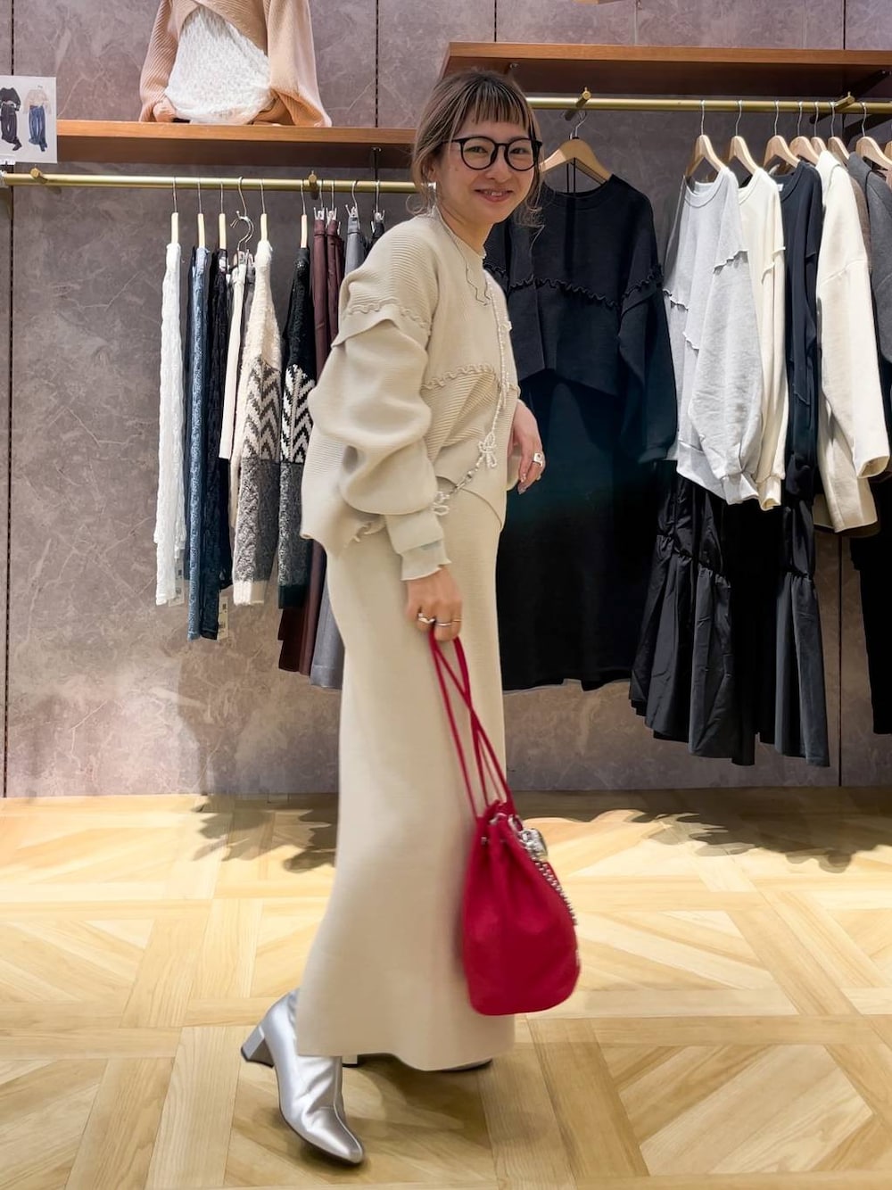 これだけでキマる!セットアップ♡ 【セットアップ】 プルオーバーは程よいオーバーサイズでリラックス感ある仕上がりに☺️ コンパクトで品のある衿ぐりとメローを効かせたところがポイント! スカートはニットならではの肌触りの良さとは着心地です☺️ 150センチのわたしも、スッキリ履けました! 【シューズ】 毎年定番のアイテムをアップデート! 伸縮性があり足にフィットするデザインのストレッチブーツです! 太めのヒールなので安定感があり、歩きやすさがポイント! 今年はヒールの高さを調整することでさらに歩きやすくなりました☺️ さらにはつま先の裏地には消臭・抗菌効果のあるデオドランテープを使用し、嬉しい抗菌防臭機能付きです! 履いた感じもとてもスッキリ見え! 21センチのわたしはMサイズは大きいですが、脱げずに履けました! 【バッグ】 オリジナルのメタルロゴパーツが特徴的なキンチャクバッグ! 紐の通し方によって、ショルダーとハンドバックに変化させれる2WAY仕様です😊 スタイリングに合わせて持ち方を変化させて楽しめるデザイン! さらには本体右端に本体に直通のファスナーをつけることで紐を閉めた状態からでもバッグの中身を取りだせるよう 細かい部分にもこだわったアイテム! 内ポケット付きで、小物収納もできる優秀バックです。