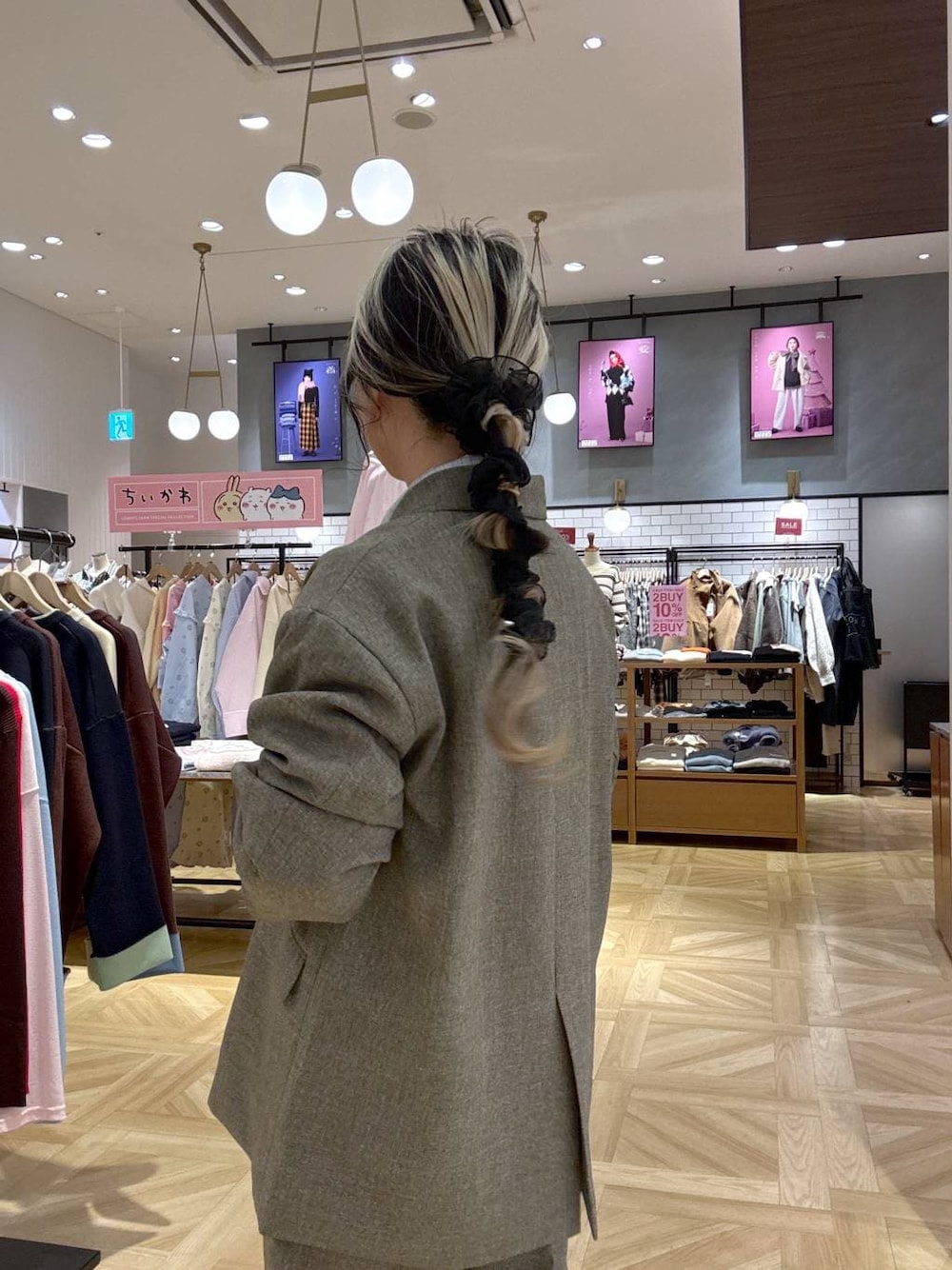 ひとつに結んで、ヘアアクセをぐるぐるしただけのスタイル! めちゃくちゃ簡単です♡
