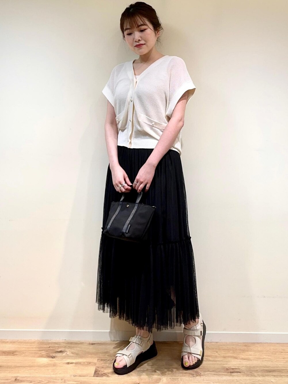 チュールスカートを着るだけで、とっても華やかなスタイリングになります♪ スカートがボリュームのあるデザインなのでトップスは抜いて少しコンパクトな着こなしがバランス良いです◎ スポーティーな小物合わせでカジュアルダウンさせるのもおすすめですよ! ※ 店頭及び屋外での撮影画像は、光の当たり具合で色味が異なって見える場合がございます。 商品の色味はスタジオ撮影の画像をご参照下さい。 >LINE接客承ってます! 聞きたいことはあるけれど電話するお時間がない方、 なかなか外に出られないという方、 お取り置きなどもお伺い出来ます! 是非、お気軽にメッセージ送ってください。 <a href="https://lin.ee/yxw7QSM" style="background:url(https://scdn.line-apps.com/n/line_add_friends/btn/ja.png); background-size: contain; display: block;width: 116px;height: 36px; margin:.5em 0;"></a>