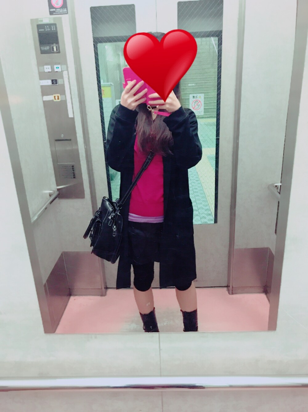寒かったのでニット×ニット。今季初めてレザースカートを着てみました。