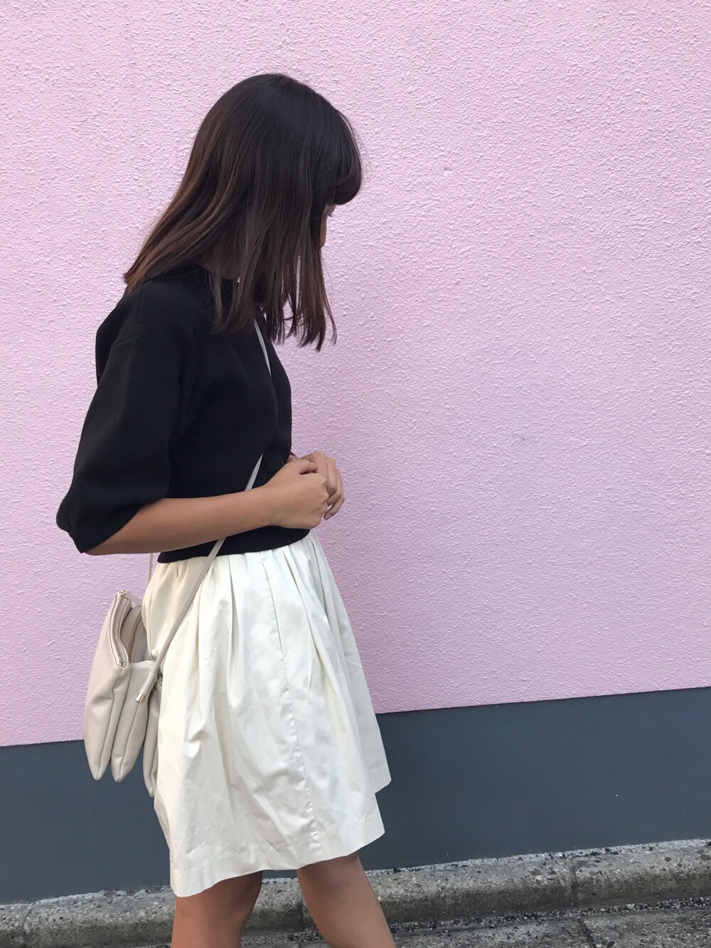 久しぶりの私服。 ブラックとホワイトのシンプルコーデ。 ニットの丈感がお気に入り