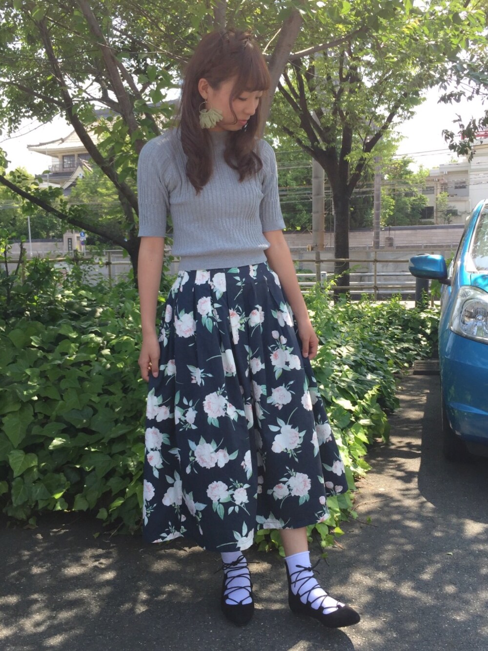 久しぶりにレースアップシューズを履いてみました。 靴ずれするからあんまり履いてなかったけど、くつ下履いたら大丈夫だった。 グレーのトップスはなんでも合わせやすいから、たくさん使ってる。