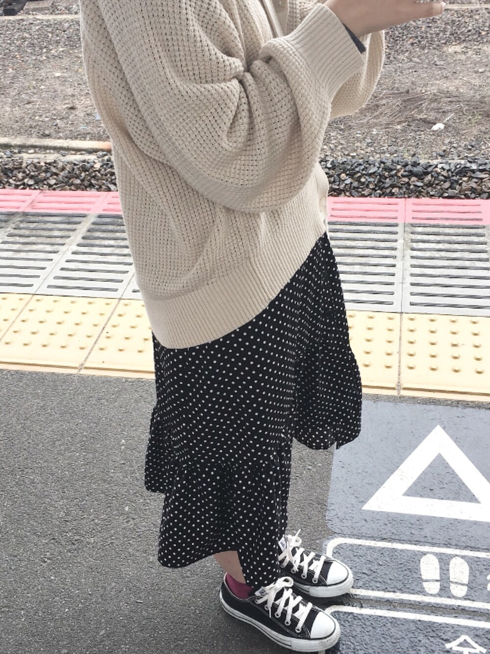 閲覧いただきありがとうございます😊こちらも春ごろに着ていた服になるのですが、しまむらのマーメイドスカート!とってもかわいいですよね🥰好きすぎて春夏ずっと履いてました!!(笑)グローバルワークのカーディガンも一目惚れで購入してずっと着てました💕やっぱり女の子らしい服装すると気分が上がります⤴︎