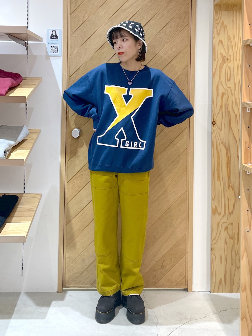 miku(X-girl福岡(ソラリアプラザ))のハット「KNIT BUCKET HAT」を使ったコーディネート