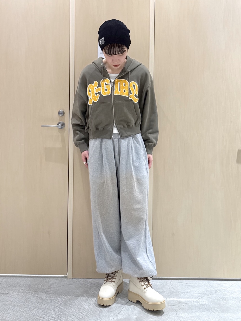 miku(X-girl福岡(ソラリアプラザ))のニットキャップ/ビーニー「FACE LABEL BEANIE」を使ったコーディネート