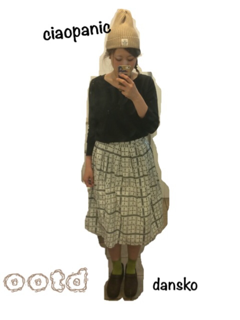 帽子 ciaopanic トップス UNIQLO スカート chambre de charme iki(シャンブル ドゥ シャーム イキ) 靴下 靴下屋 靴 dansko