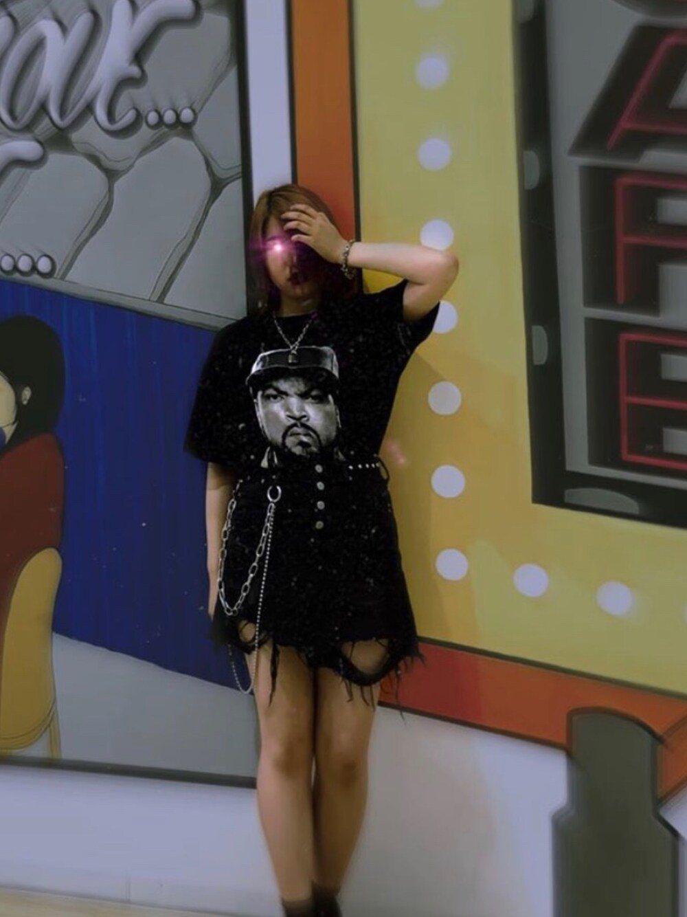ICE CUBE が特徴的なTシャツでHIPHOP感を出したくてシルバーアクセサリーをいっぱい付けましたฅ"