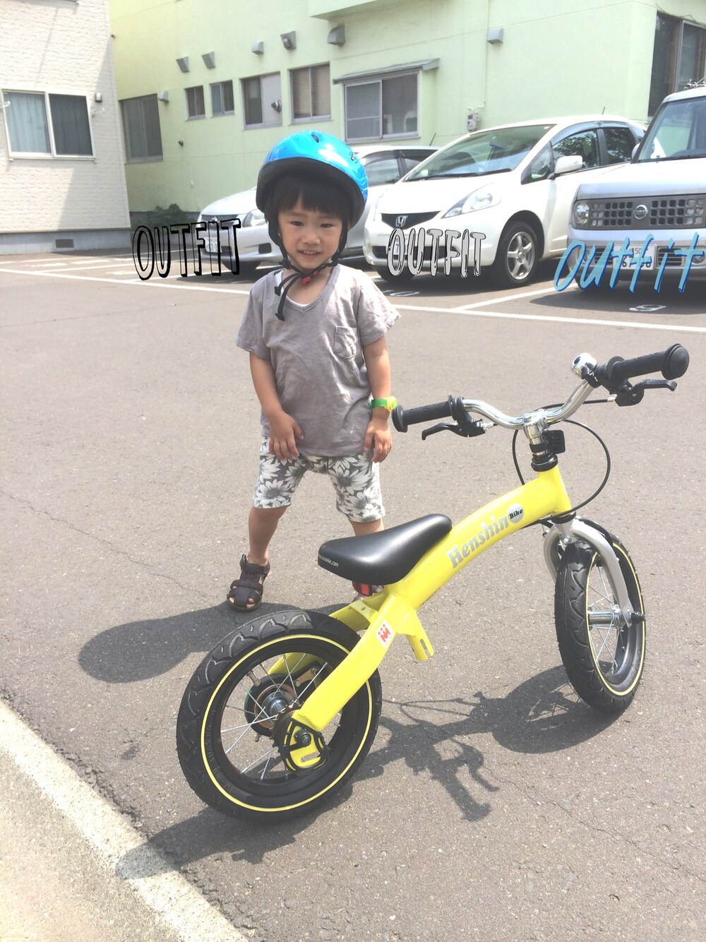 今日は自宅前にてバランスバイクの練習! 韓国子供服でグレーで統一してみました。 へんしんバイク長く使えそうでおすすめです。