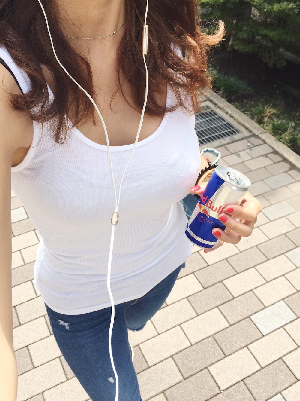 東京あっつーい! 9月入っても安定のシンプルコーデ! 今日は白タンクにデニムにシルバーネックレスのみ〜 カバンはLeeのデニムバック❤️❤️❤️ イヤホンは4代目のbeatsさん。