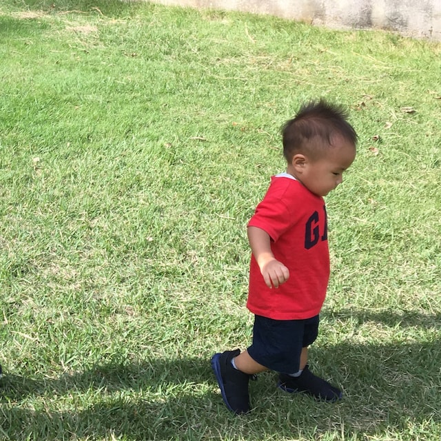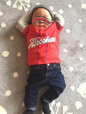 1歳の男の子。 帽子などの小物は付けさせてくれない頑固者!笑