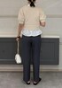 リボン&ファーはフェミニンな印象ですが、インナーに襟付きシャツを差し込むとフェミニンになり過ぎず今年らしい着こなしが出来ます♩ 30代ですが、年齢を重ねてもかわいいアイテムにときめきます…♡ かわいいファートップスにはテーパードパンツを合わせると大人カジュアルに着こなせました♩