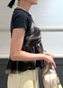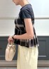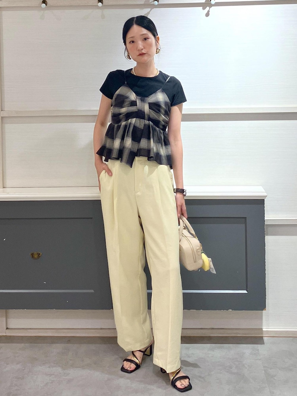 こんにちは! 京都藤井大丸VISの長島です 見て頂いてありがとうございます♩ まだまだ暑い日が続きますが、そろそろ秋を感じたいということで後ろロゴがポイントのPOLOTシャツにチェック柄ビスチェを重ね着し、晩夏に活躍出来るスタイリングにしました♡ チェック柄があるだけで一気に秋らしくなって嬉しいです♩