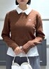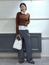 こんにちは! ご覧頂きありがとうございます♪ 京都藤井大丸店の長島です☺︎ 1枚で決まるレイヤードトップスはブラウン×グレーのカラー合わせで大人カジュアルなスタイリングにしました♡ カジュアル過ぎないのでオフィスでも活躍します! ※記載のないアイテムは私物です☺︎