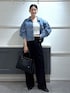 こんにちは! ご覧頂きありがとうございます♪ 京都藤井大丸店の長島です☺︎ 短丈のデニムジャケットをブラックのボトムスを合わせた大人カジュアルコーデ♡ 高身長を活かし、ヘルシーさを出すことで大人な落ち着きと洗練された雰囲気を演出しました♪ さりげない抜け感があって、普段使いにもおしゃれ見えするバランスが素敵で大好きなコーデです♪