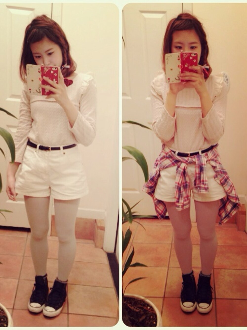 シャツ:RETRO GIRL ショーパン:Chico ベルト:?? タイツ:靴下屋 お天気が良かったのでflowerのトップス♩ お気に入りすぎる〜!