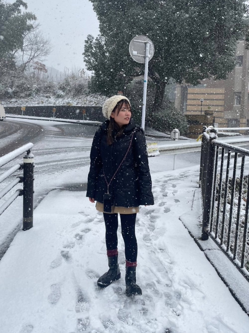 大雪❄️ LACOSTEのニット帽🐊 タイツの上から靴下重ねてチラ見せ🧦♥️