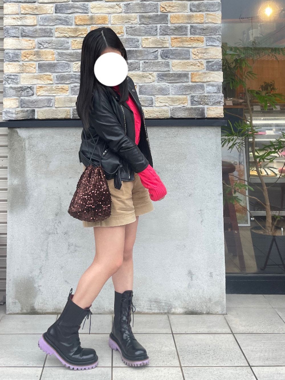 春コーデ! ラルフのピンクニットとライダース🎀🖤⋆͛*͛ 甘辛ベースで着てみた💫