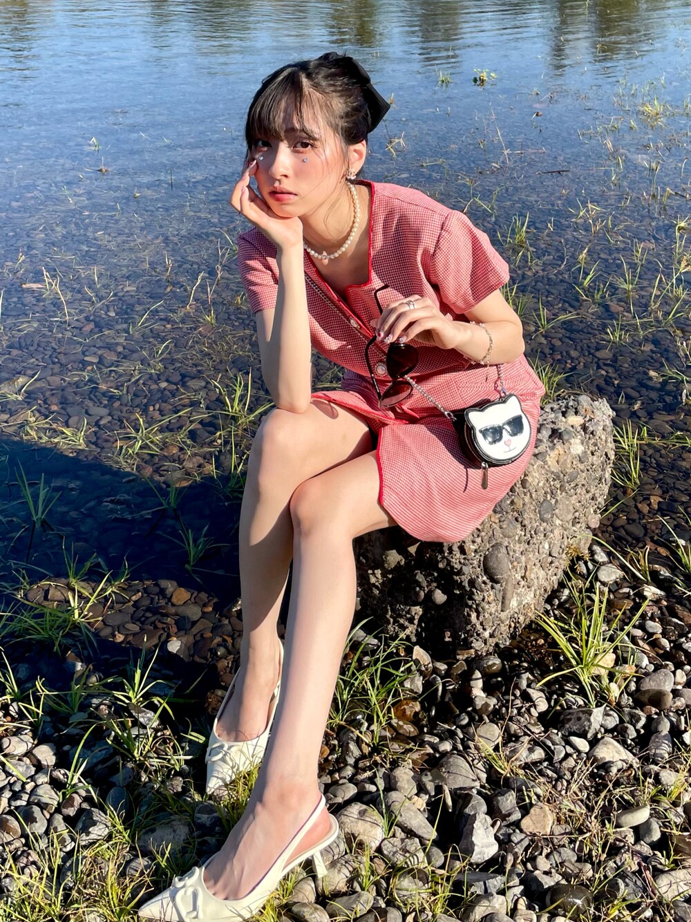 古着屋さんでゲットした1枚で可愛く着れる ワンピースです💞小物は白と黒でまとめてワンピースの赤を際立たせ、マイクロバックを合わせることで上品な可愛らしいイメージにしました👸🏼🎀