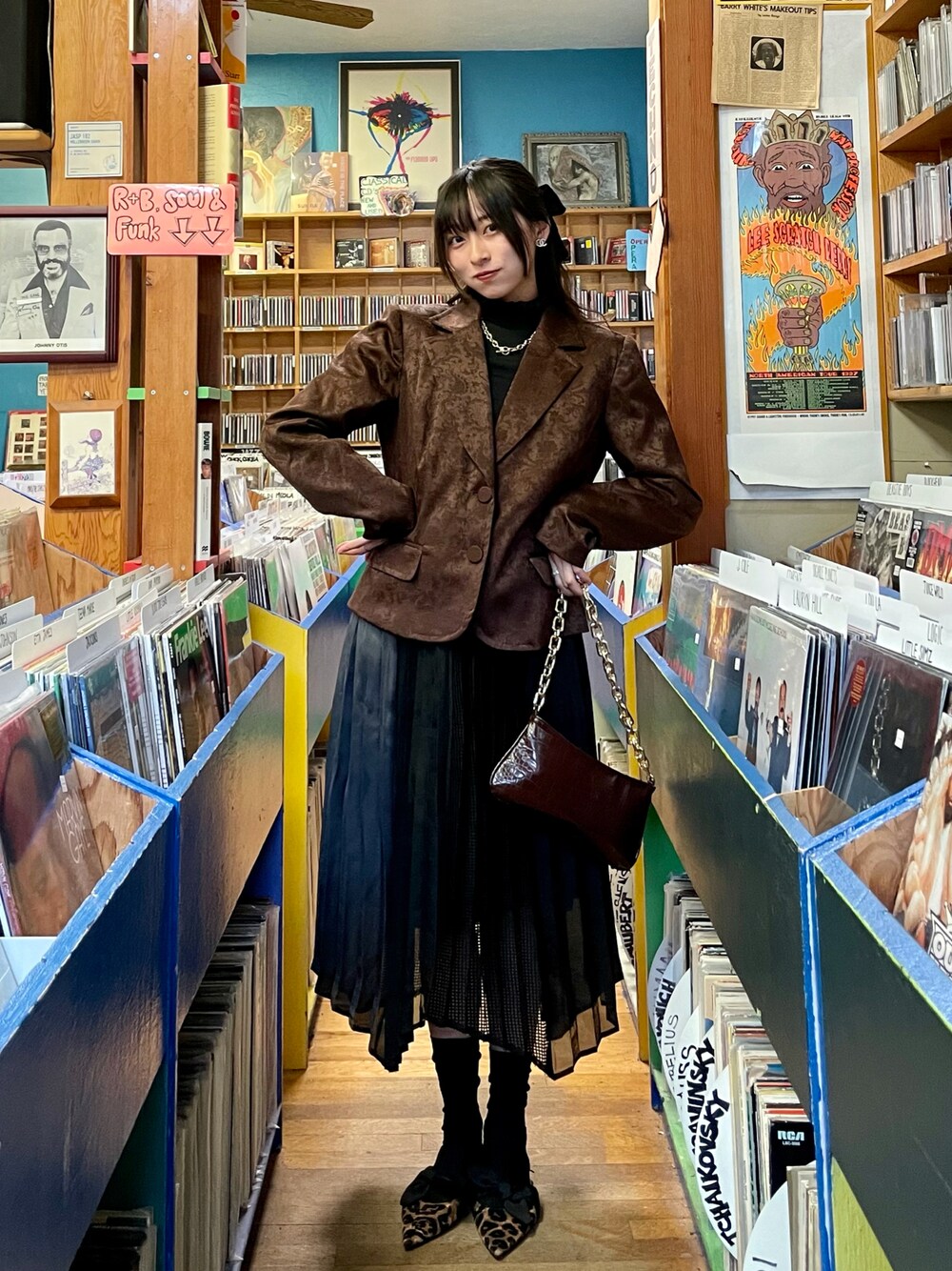 ブラックとブラウンで大人可愛くまとめたコーデです🍂🍁🤎ブラックだけど、アシンメトリーで透け感のあるスカートと合わせることで重たくなりすぎずグッド❕