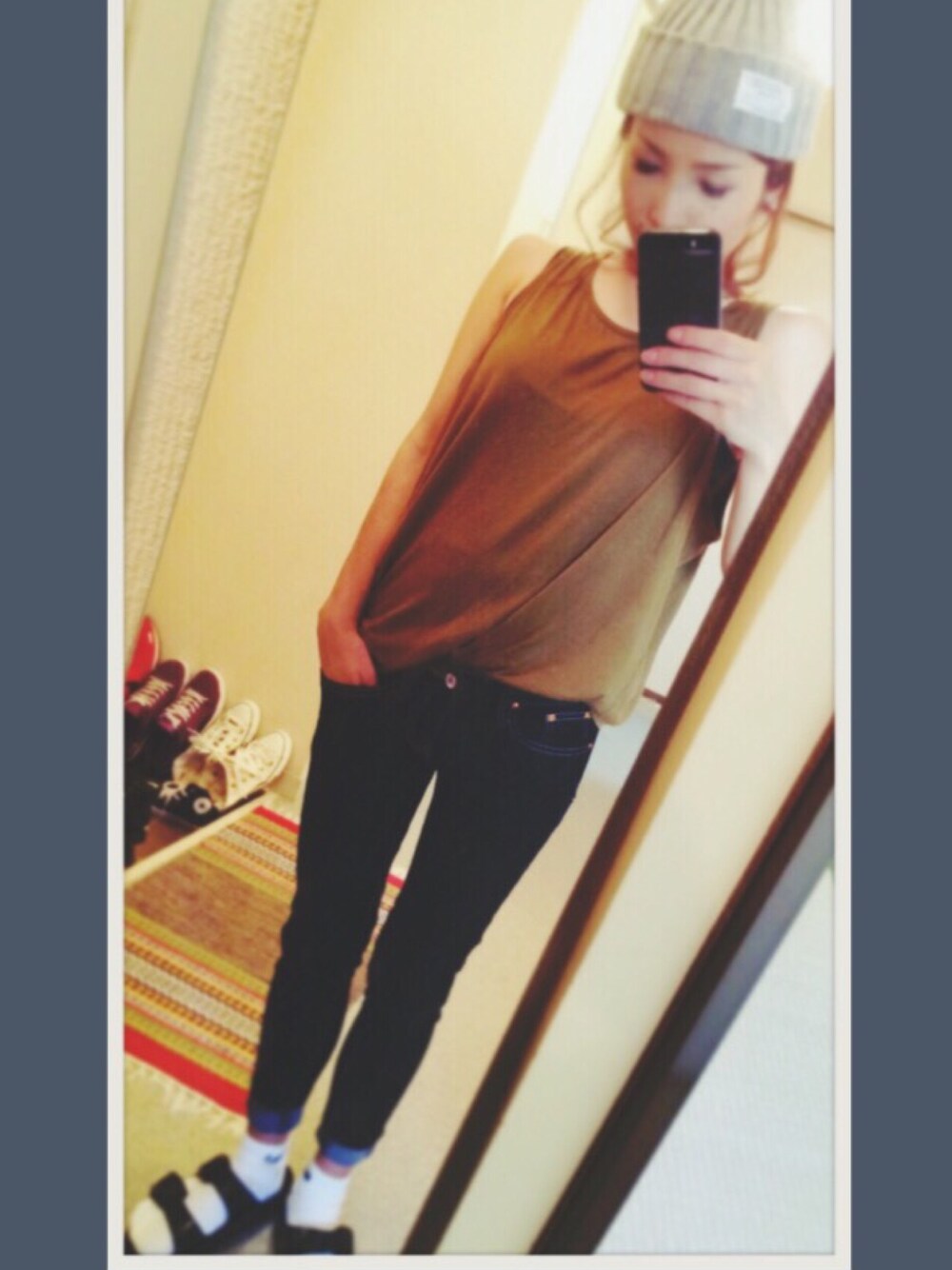 久々にスキニー履いたら暑すぎるーー! ソックスは旦那の拝借しました♡