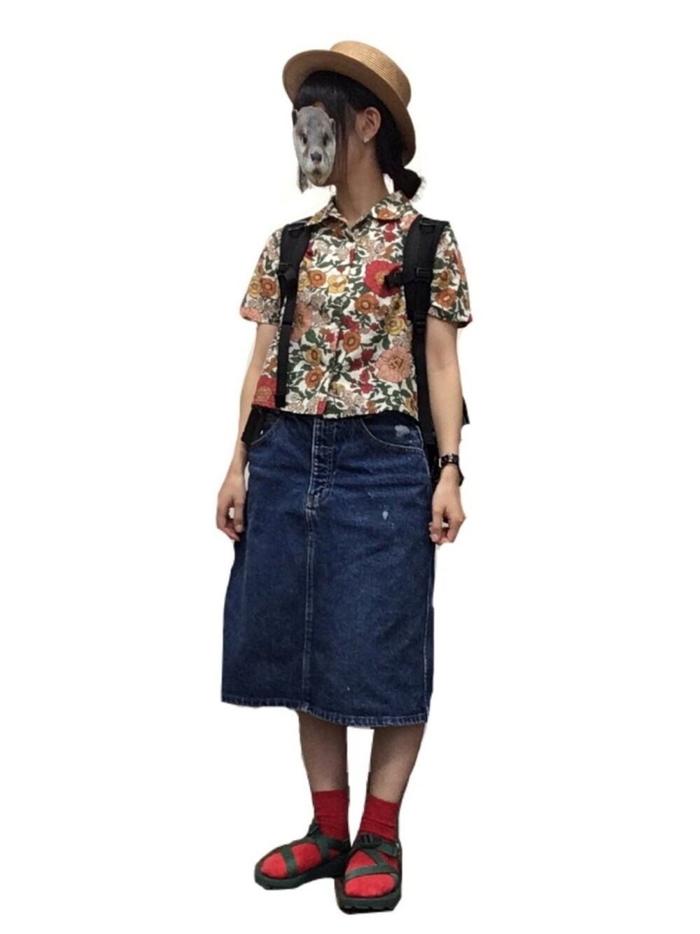 たまごのシャツ/ブラウス「M 花柄開衿シャツ」を使ったコーディネート