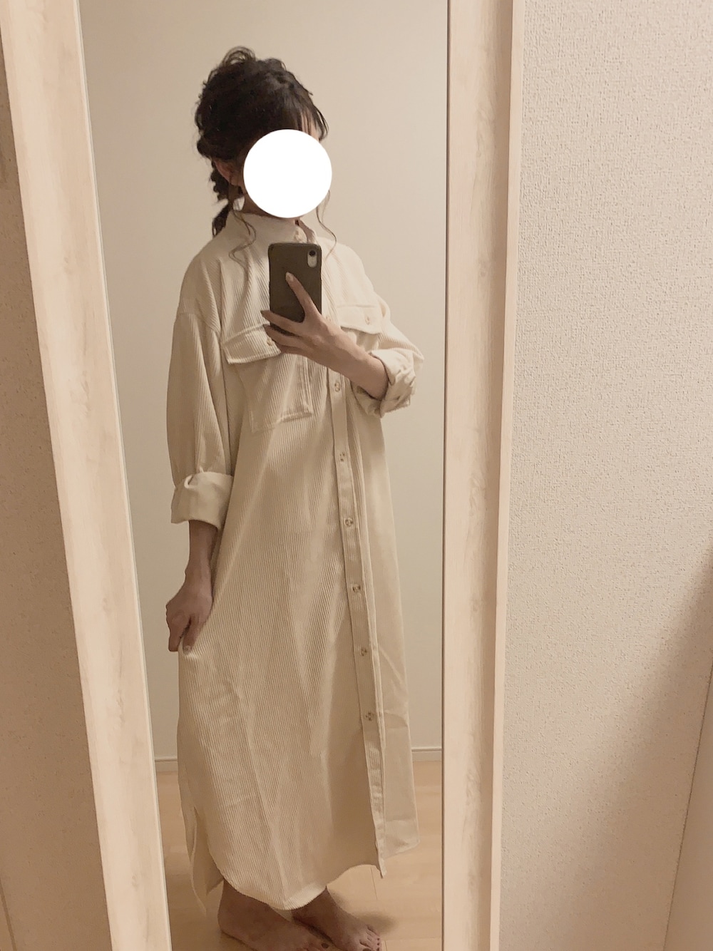 𝒩のワンピース「コーデュロイシャツワンピース」を使ったコーディネート