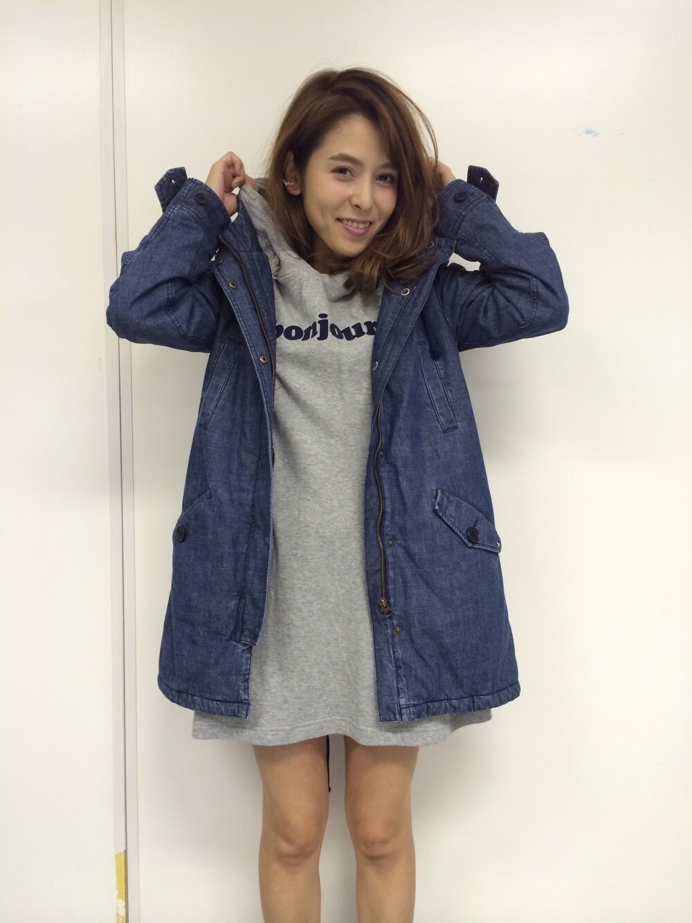 モコモコ裏地がかわいいモッズコートと Aラインワンピースのコーデです