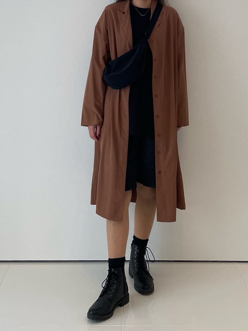 いつもご覧頂きありがとうございます★ ♡+フォロー ありがとうございます💝 ブラックコーデに 差し色でブラウンをいれて 柔らかい印象に...⭐︎