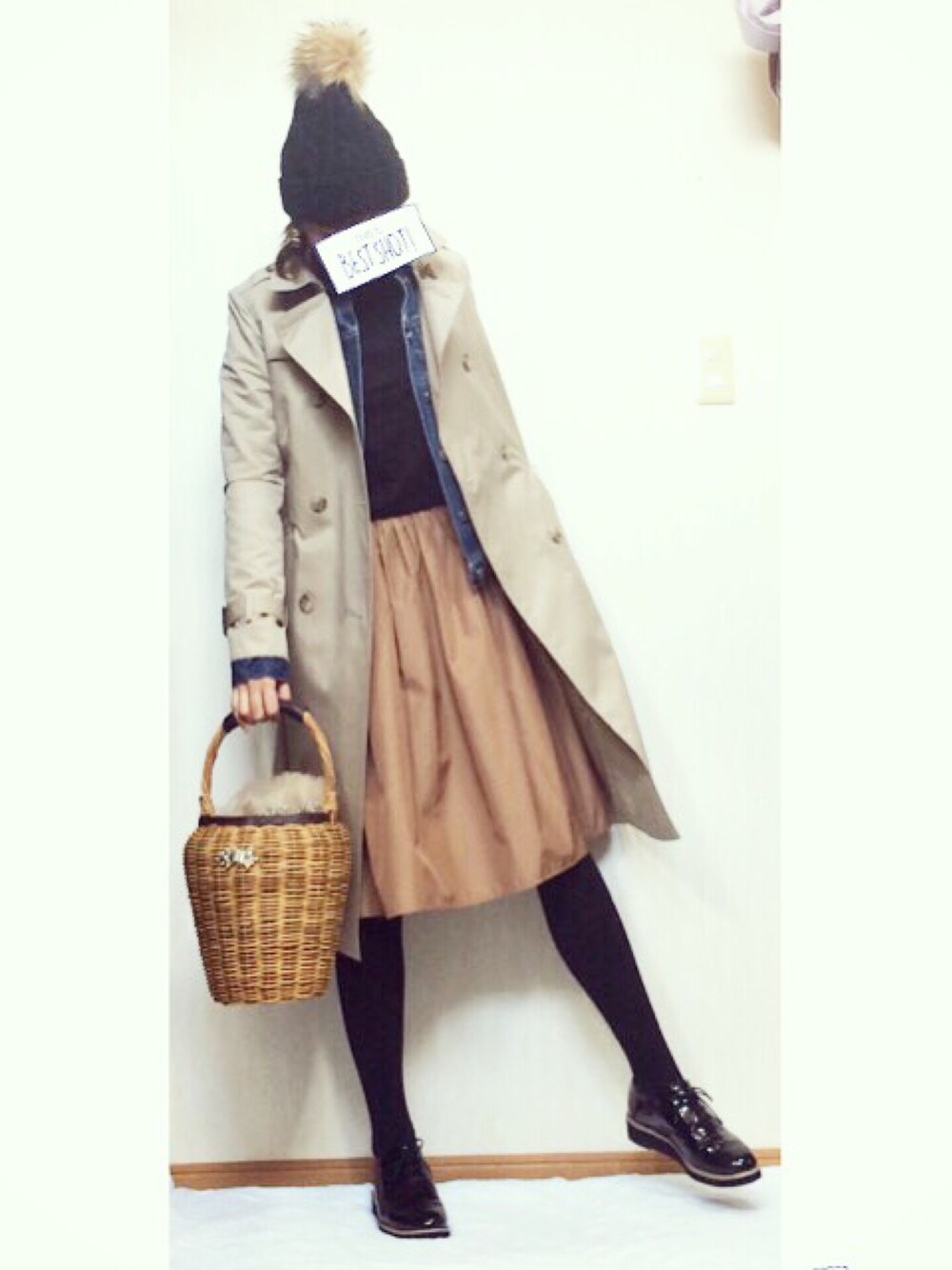 トレンチコートにバスケット♡ 今日はスカートでo(♡´▽`♡)